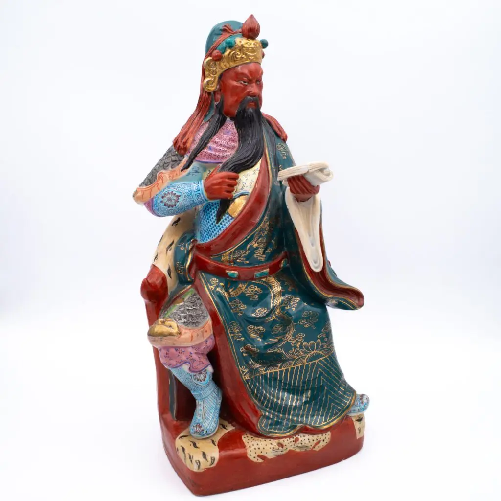 Fine Chinese Vintage Famille Rose Statue Figurine of a Seated Guanyin 7″ 20th C