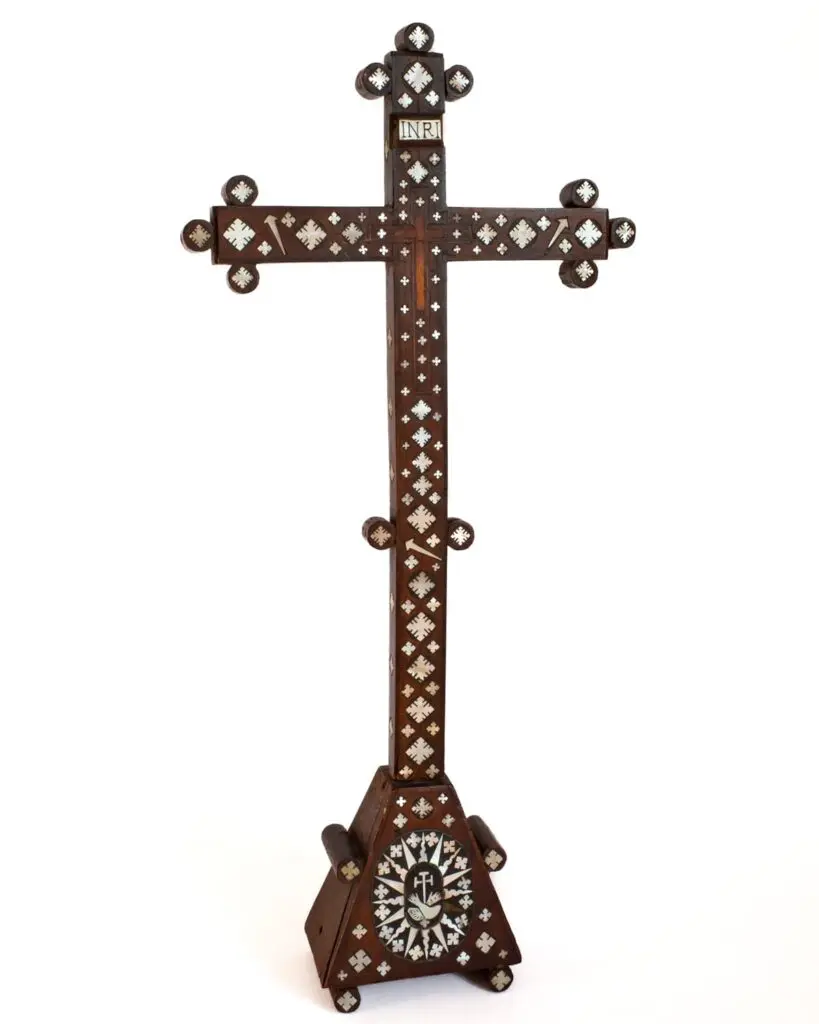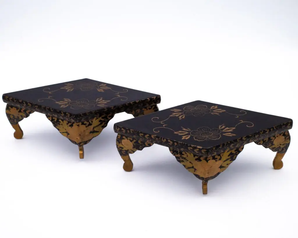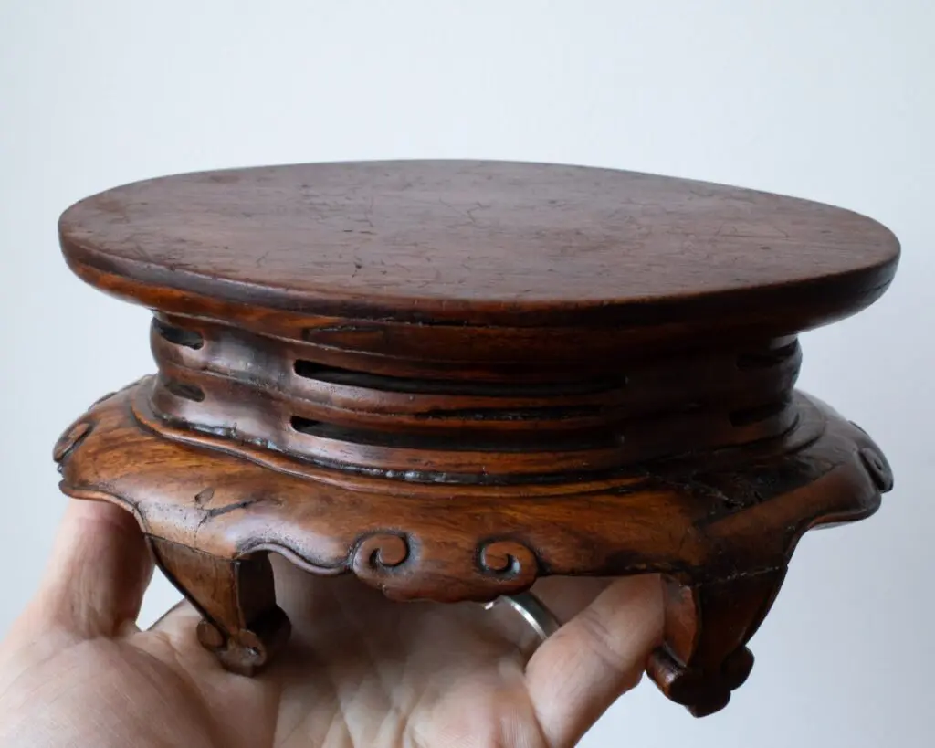 Chinese Antique Vintage Carved Hardwood Lozenge Display Stand Ruyi Decoration