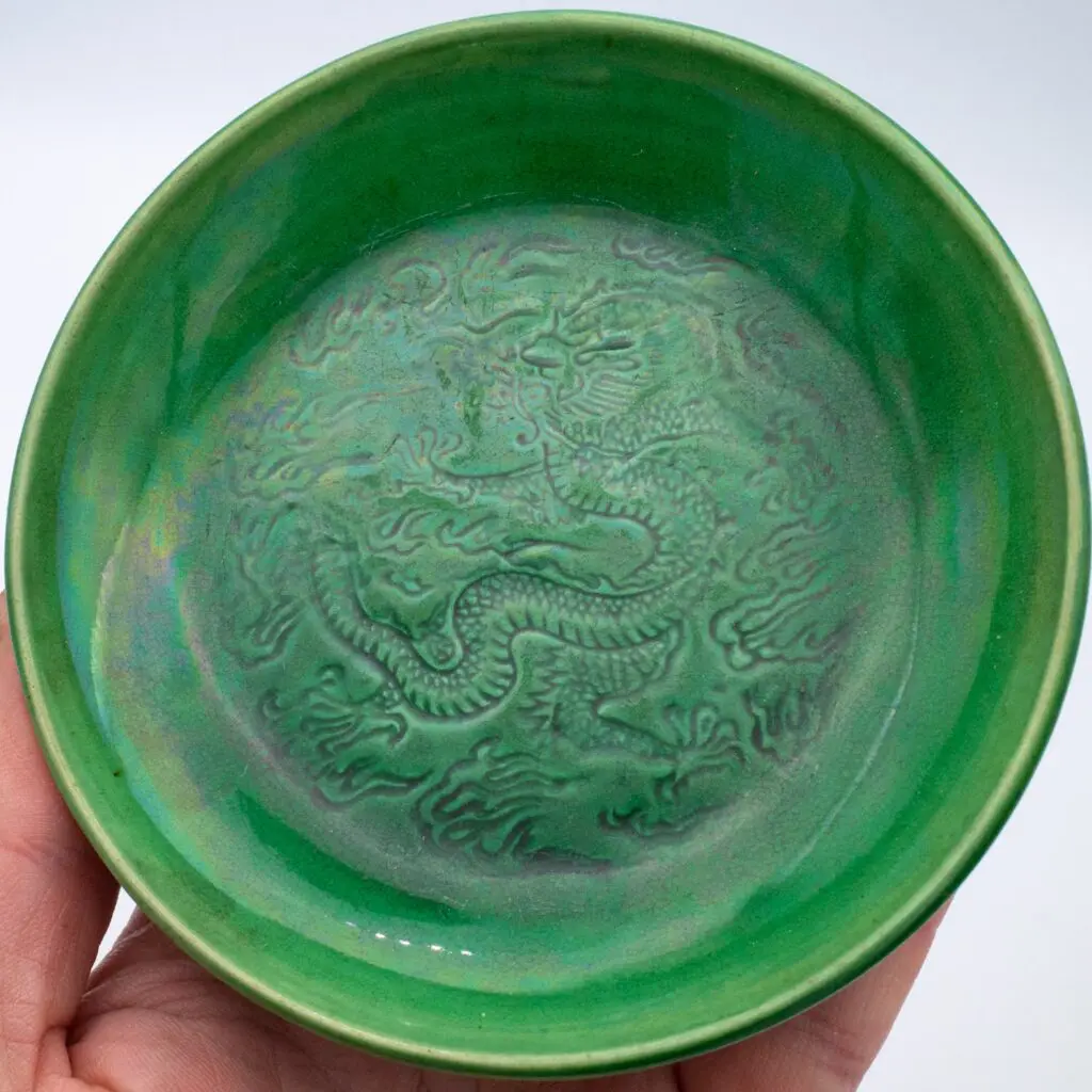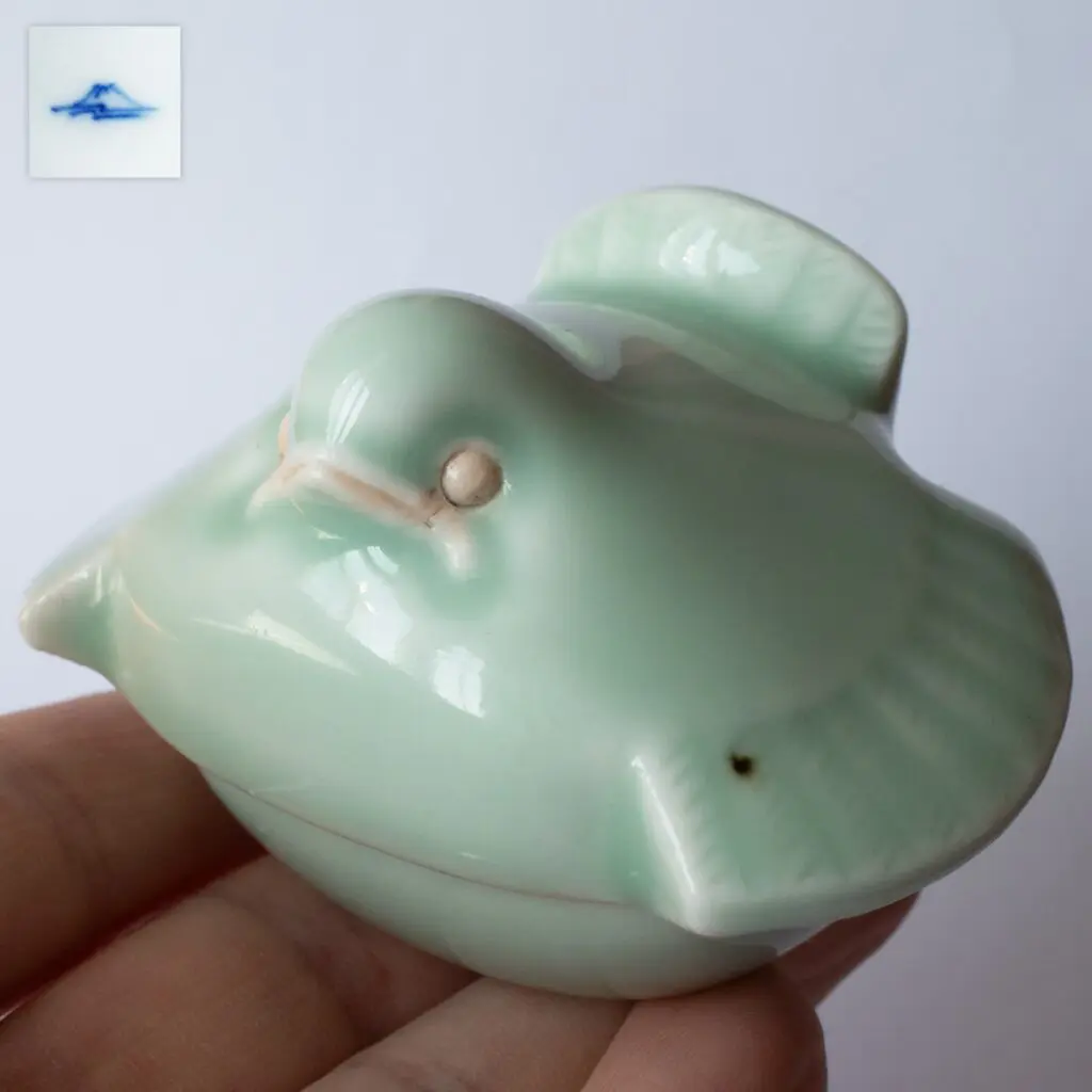 Antique Japanese Sanda Ware Celadon Glazed Water Dropper and Small Dishes Edo