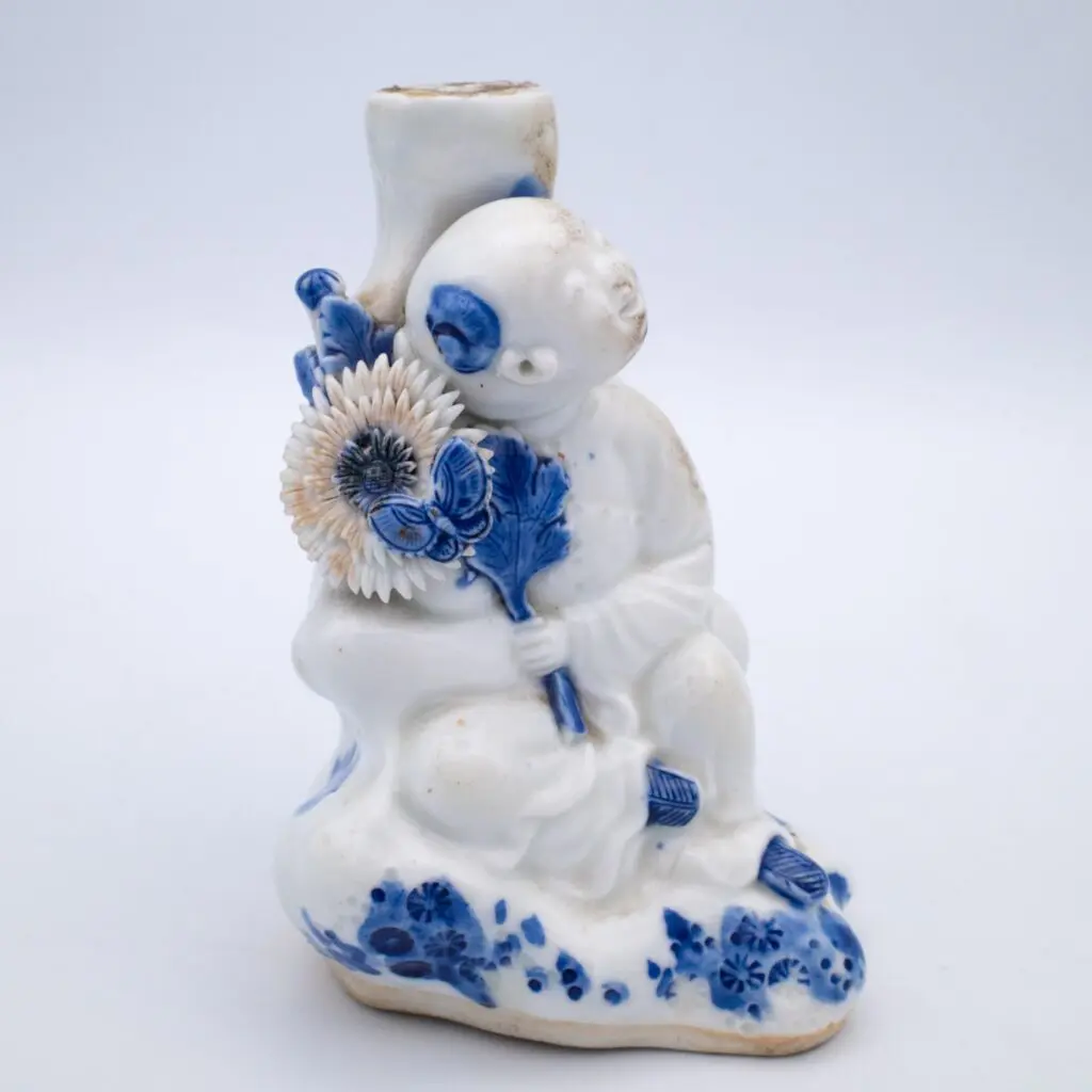 Chinese Antique Blue and White Porcelain Saucer Clobbered in Europe 18th Century