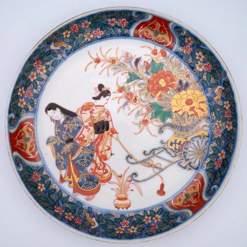 Large Vintage Japanese Kutani Porcelain Charger by Mitsui Tamekichi 三ツ井為吉 30cm