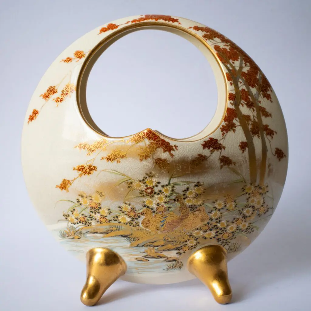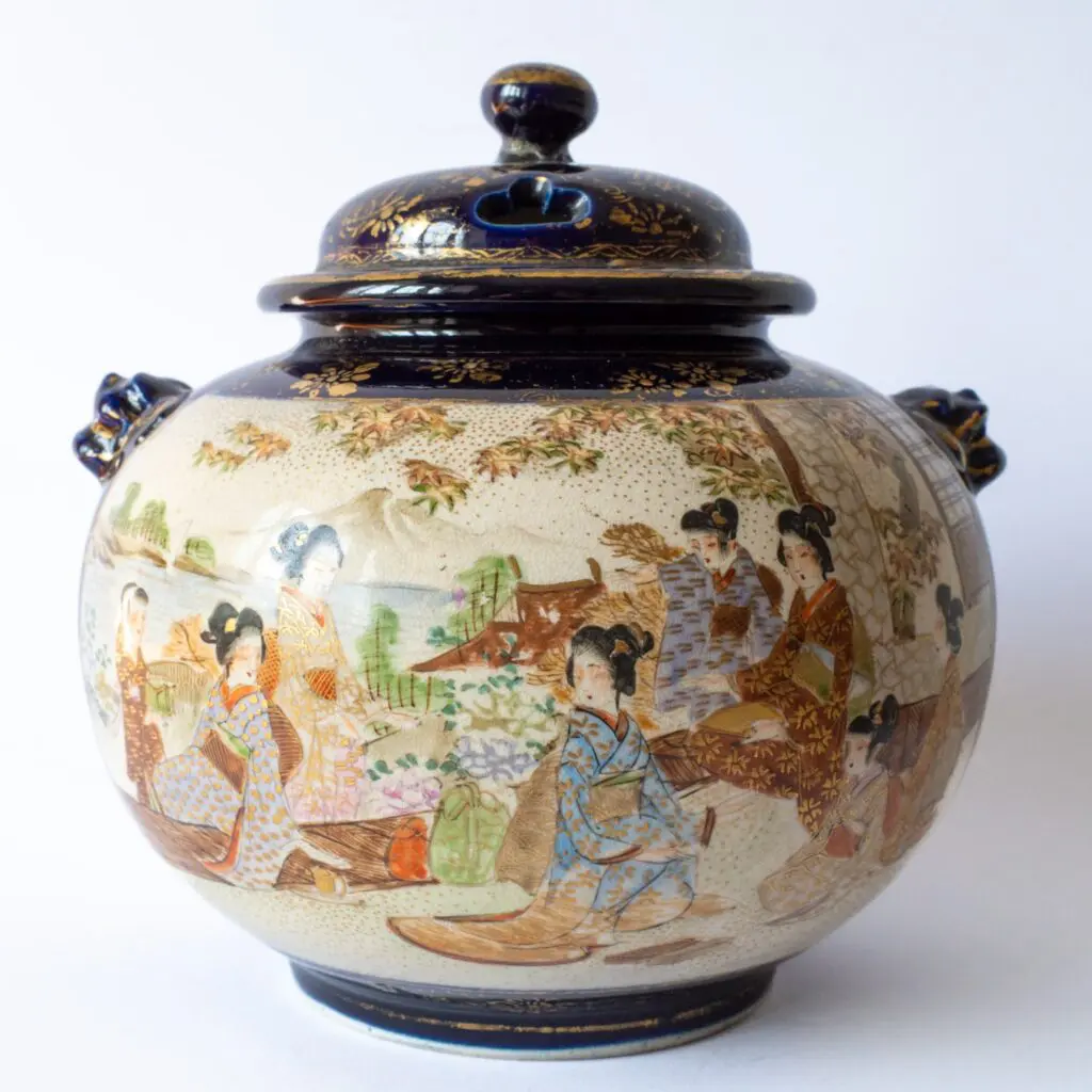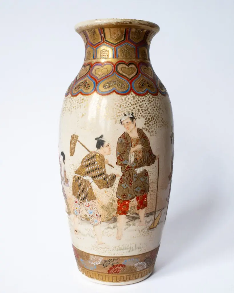Antique Japanese Meiji Taisho Satsuma Pottery Vase With Figures Early 20th C