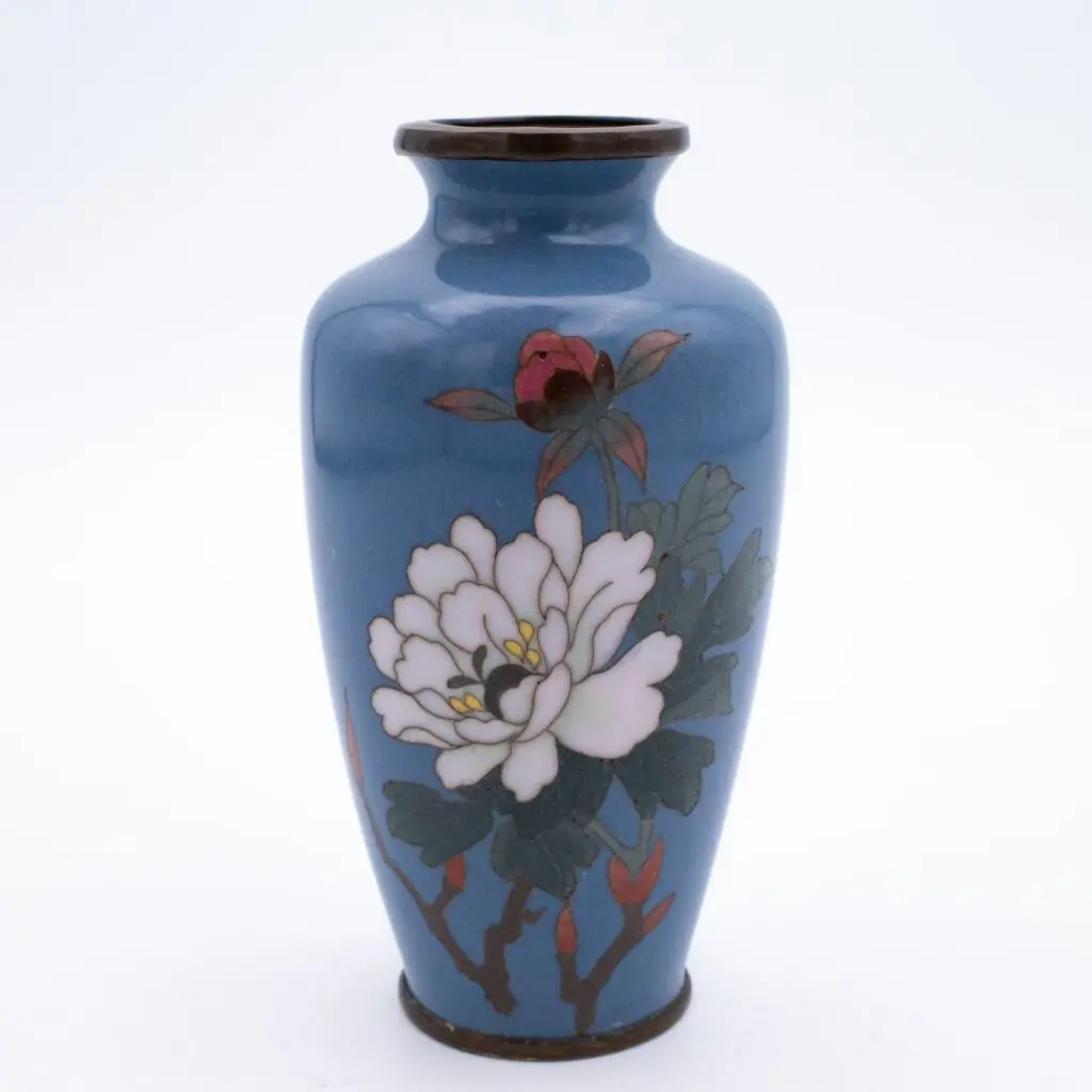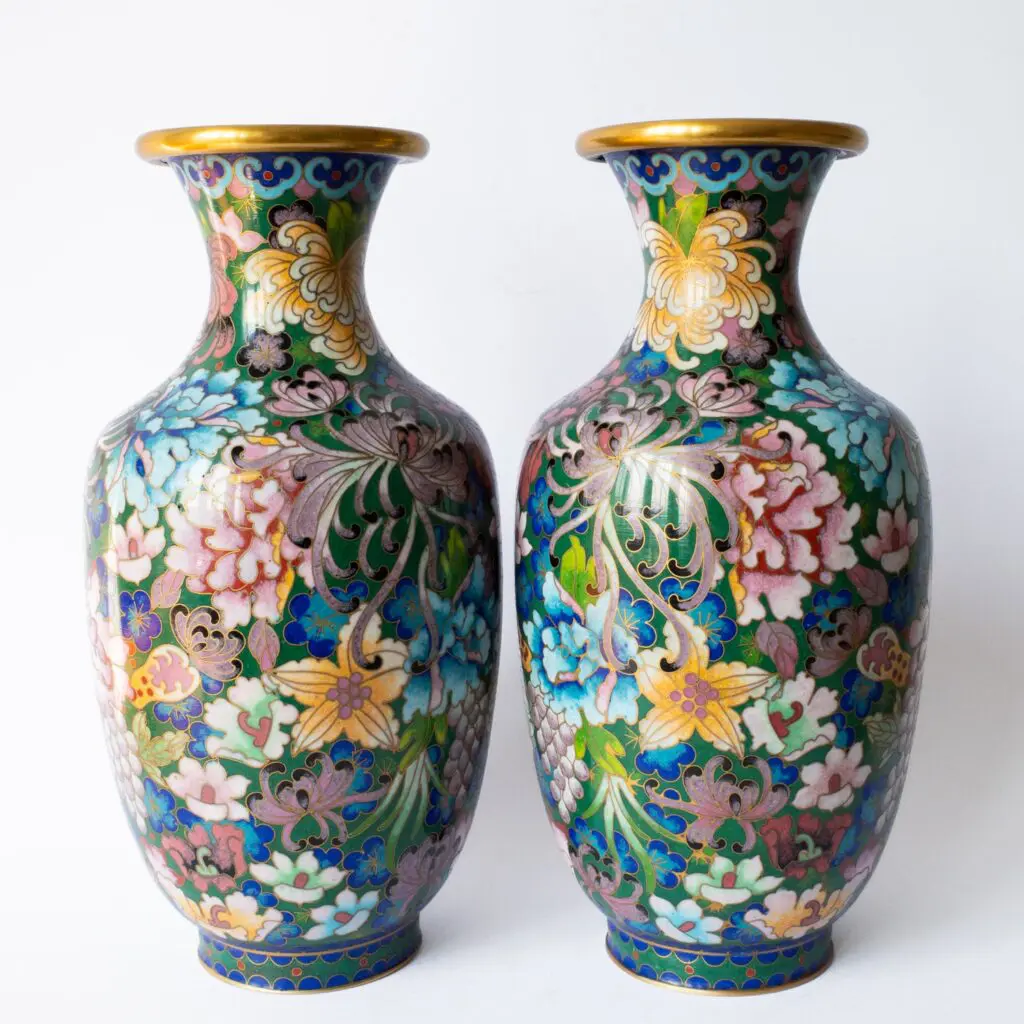 Antique Pair of Miniature Japanese Cloisonne Enamelled Vases Early 20th Century