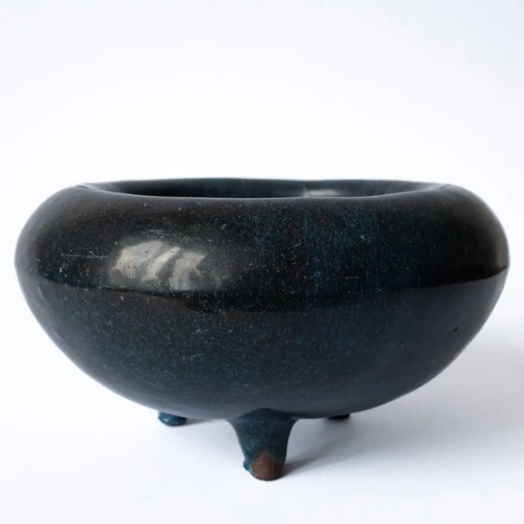 Fine Chinese Antique Blue Glazed Monochrome Ovoid Water Pot Late Qing 19th/20th C