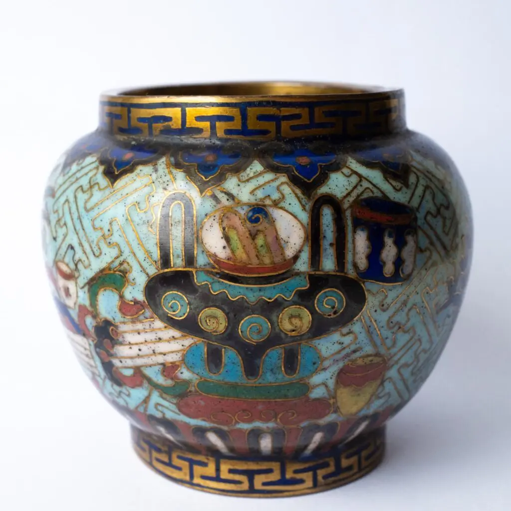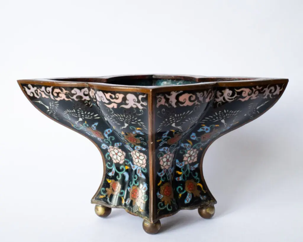Rare Antique Japanese Meiji Era Cloisonne Enamelled Quatrefoil Vase or Planter