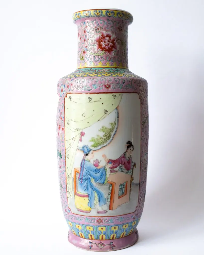 Large Chinese Antique Republic Famille Rose Porcelain Vase With Handles 43cm 17″