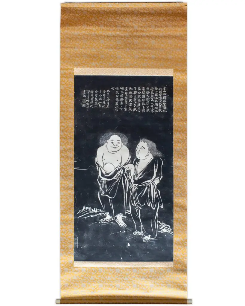 Chinese Vintage Stone Rubbing Hanshan and Shide Japanese Kakejiku Hanging Scroll