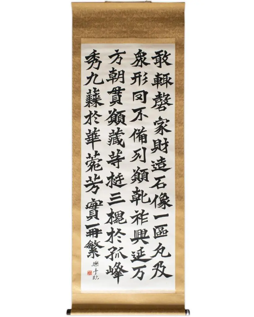 Large Vintage Japanese Kakejiku Hanging Scroll Chinese Wei Dynasty Inscription