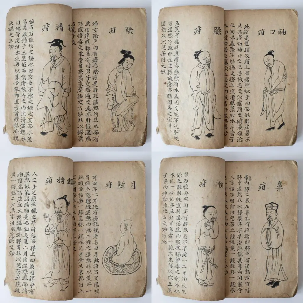 Fascinating antique traditional Chinese medicine manuscript, meticulously handwritten and illustrated. Based on ‘Waike qixuan’ 外科啟玄 (‘Mysteries of External Ailments/Secrets of External Diseases’) by Shen Gongchen 申拱辰, originally published in 1604. Title is partially visible on the right edge of the first page from the back (see the last photo). Contains 85 pages with 82 illustrations, explaining origins of numerous ailments and how to treat them. Likely a late Qing dynasty example. Book measures approximately 20.2×12.5 cm.