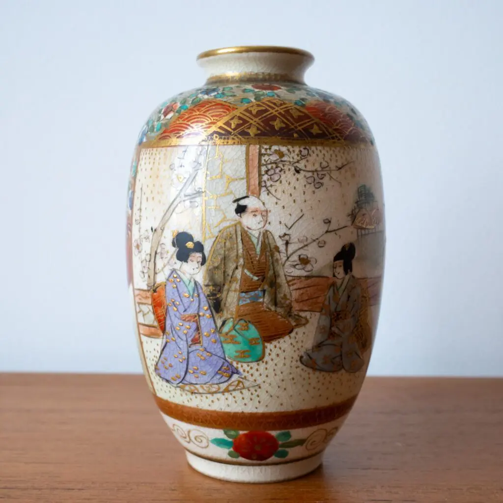 Antique Japanese Miniature Satsuma Pottery Vase With Figures Early 20th Century
