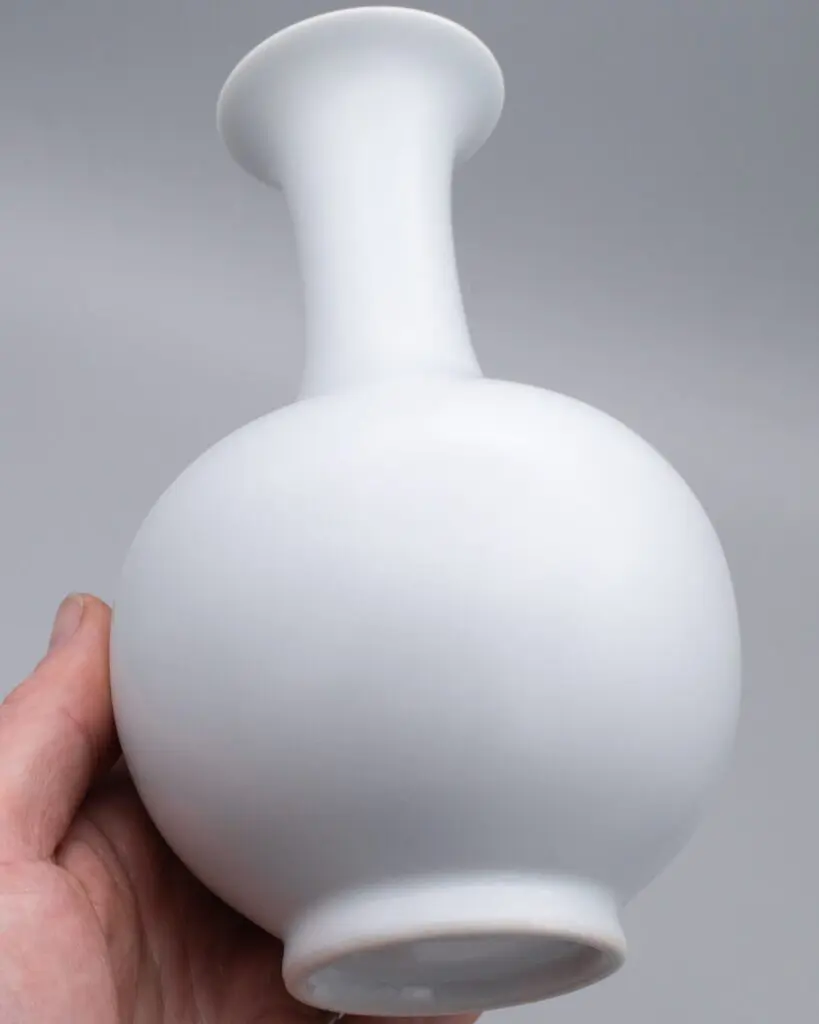 A wonderful Chinese monochrome vase covered in unusual matte white glaze. Beautifully potted and glazed. In immaculate condition so likely a 20th century example. Height: 17.2 cm.