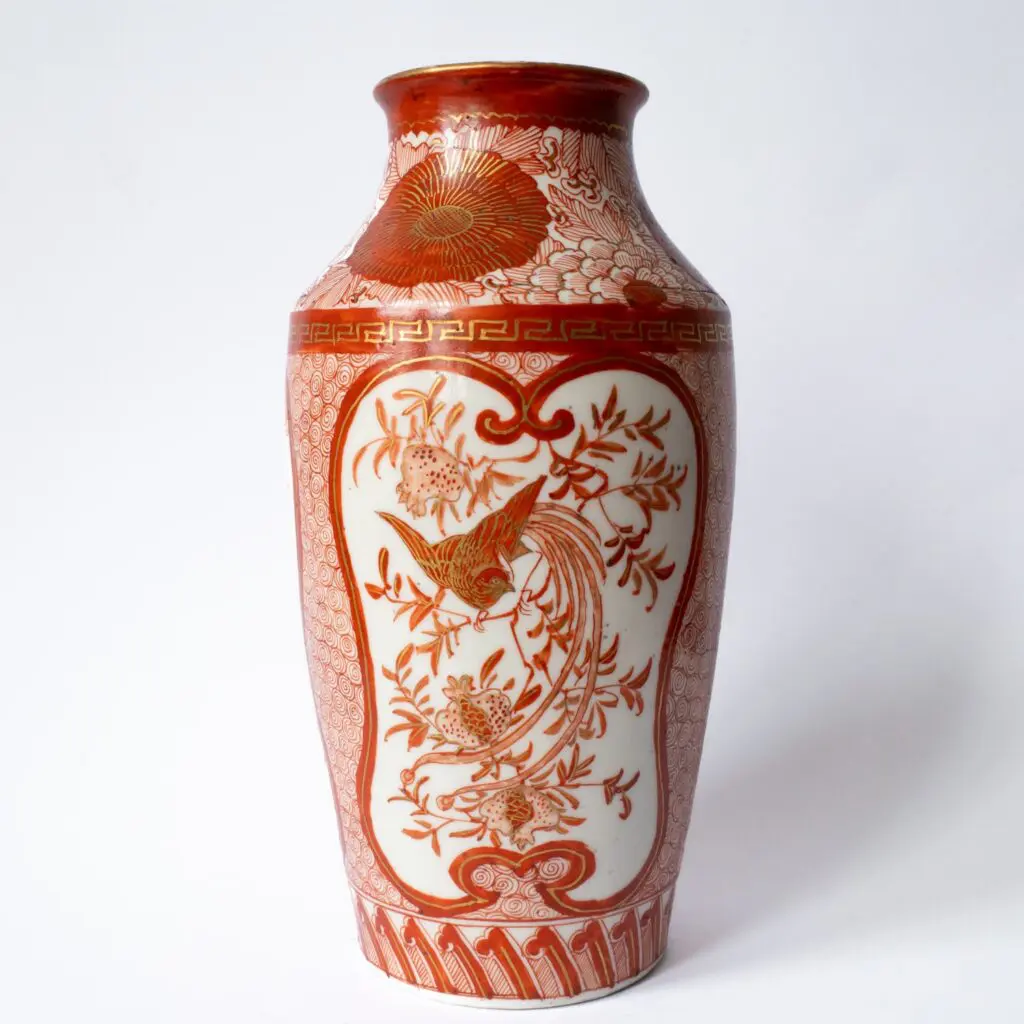 Fine Antique Japanese Aka-e Kutani Porcelain Vase With Birds 19th/20th Century