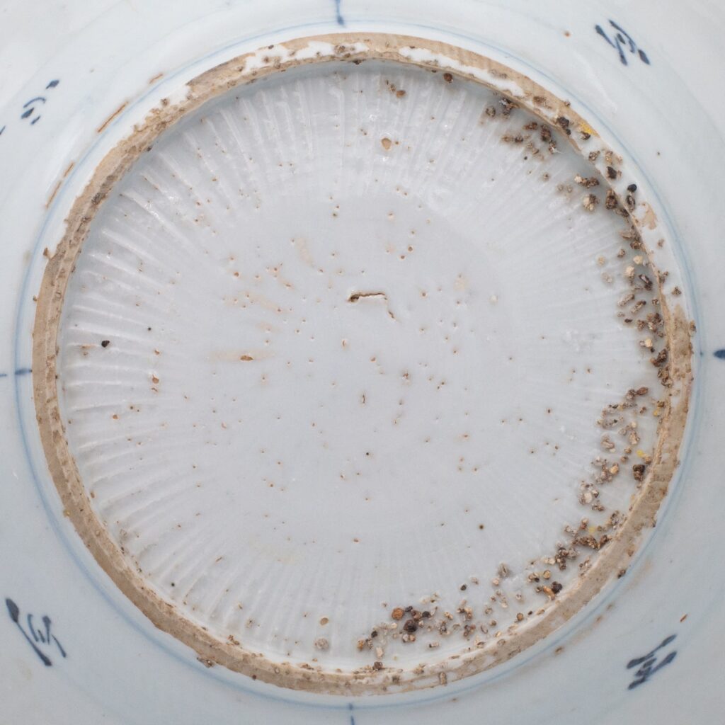 Another dish with ‘messy’ glazing and a lot of kiln grit. Late Ming dynasty, first half of the 17th century
