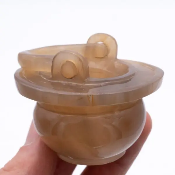 Lovely antique Chinese hand-carved agate brush washer in the form of a flower basket with articulated handle. Likely a late Qing dynasty or Republic period example. Great scholar’s object for a collection.