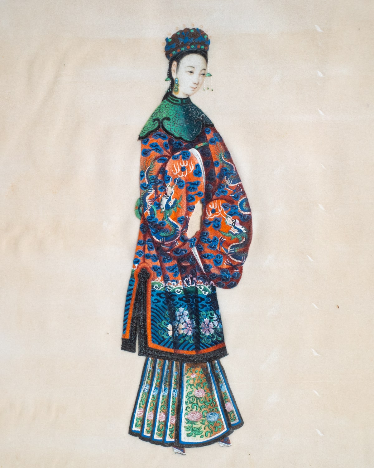 Fine pair antique Chinese export gouache paintings on pith paper depicting Qing dynasty court officials in traditional robes. Beautifully painted examples, nicely framed and glazed.