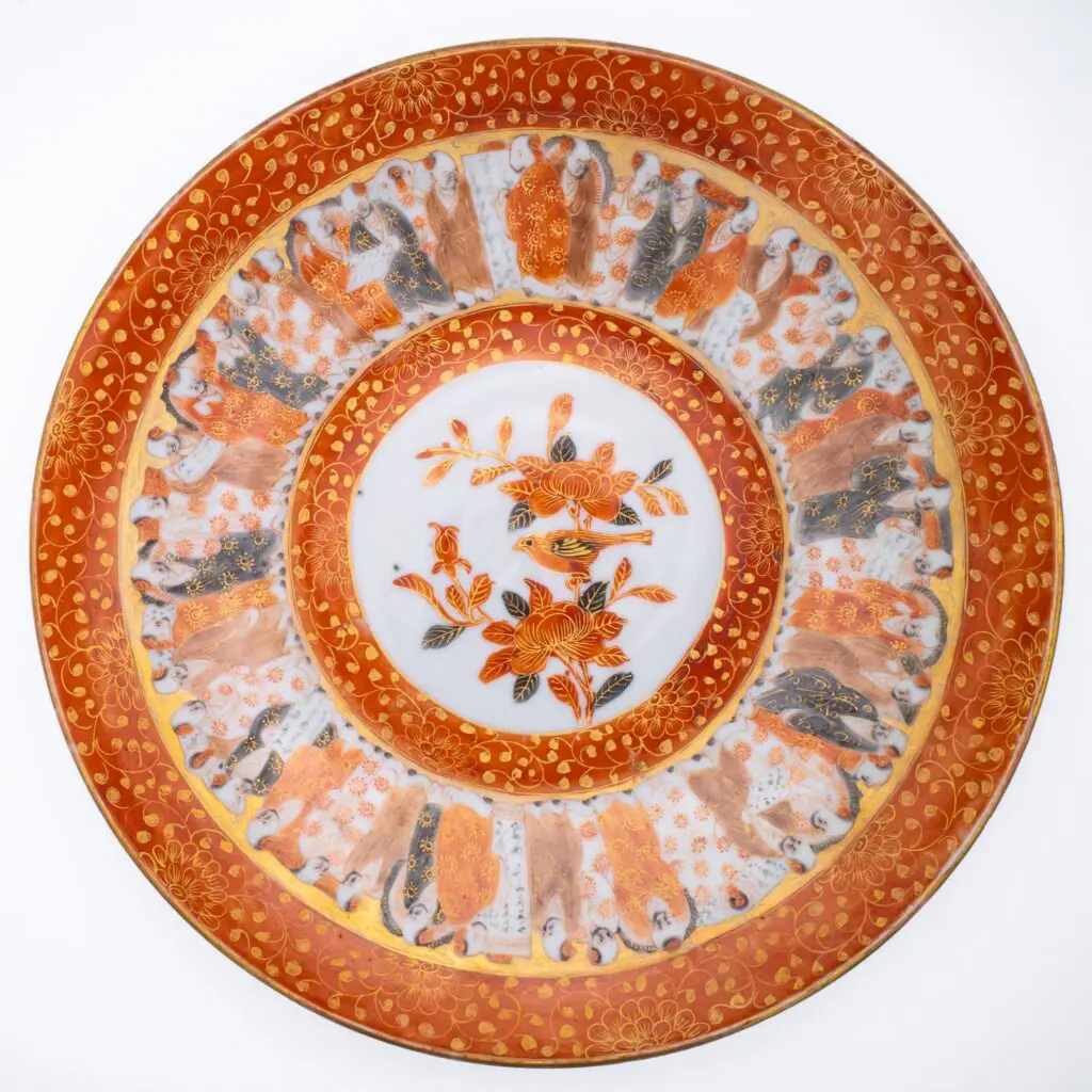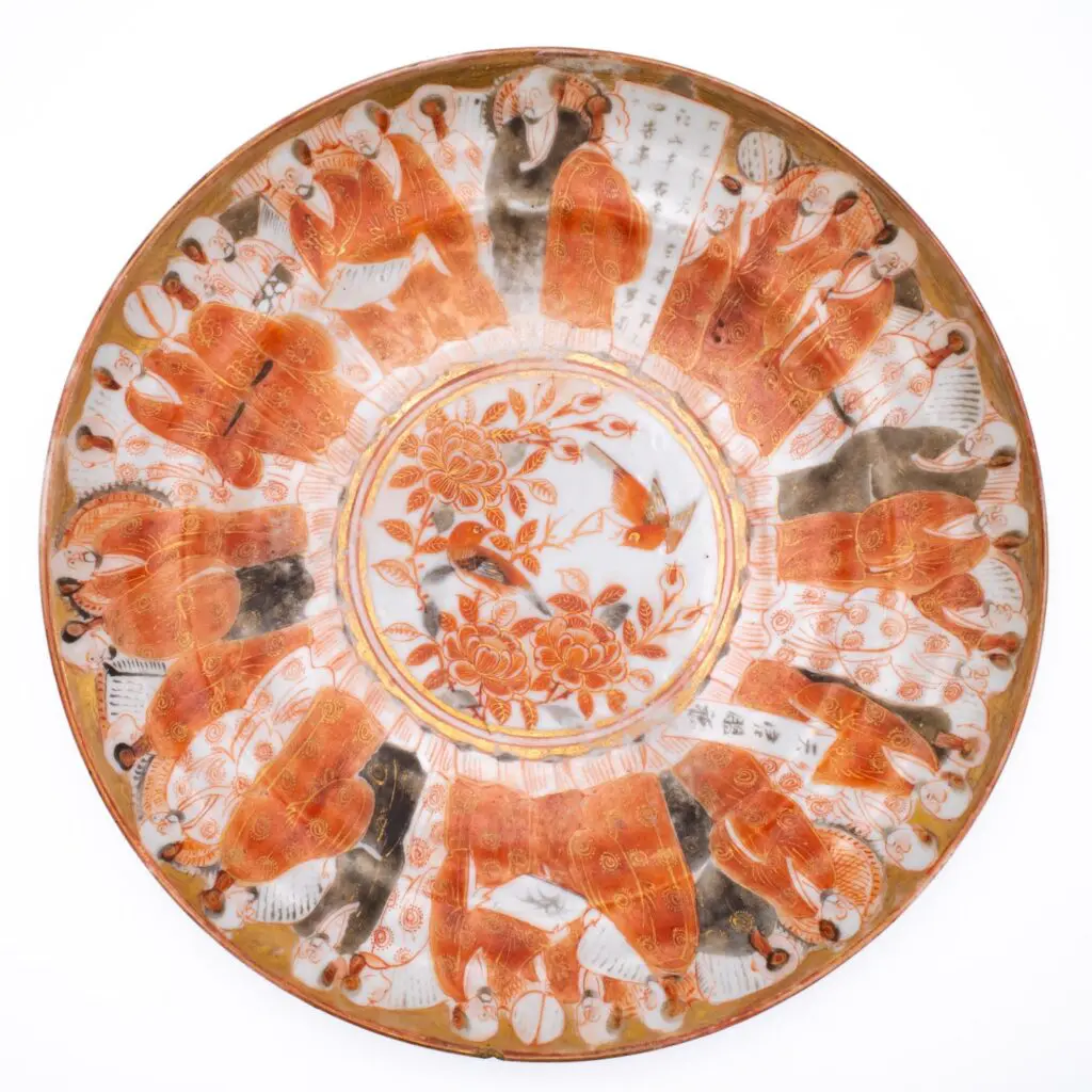 Another rare late 19th century Chinese (Cantonese) rouge de fer export porcelain dish decorated in a typical Japanese Kutani pattern commonly referred to as ‘hundred scholars’.