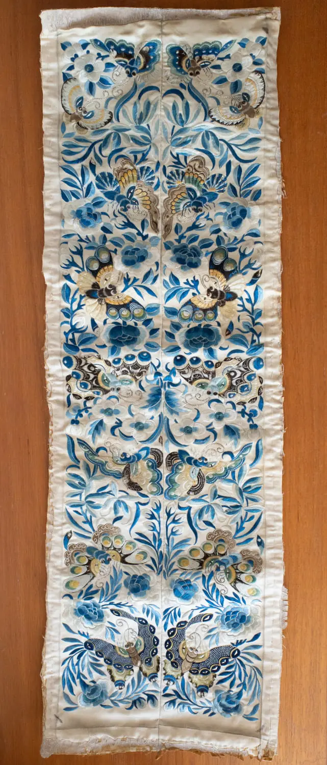 Chinese Antique Silk Embroidery Panel Butterflies Early 20th Century 61x19cm