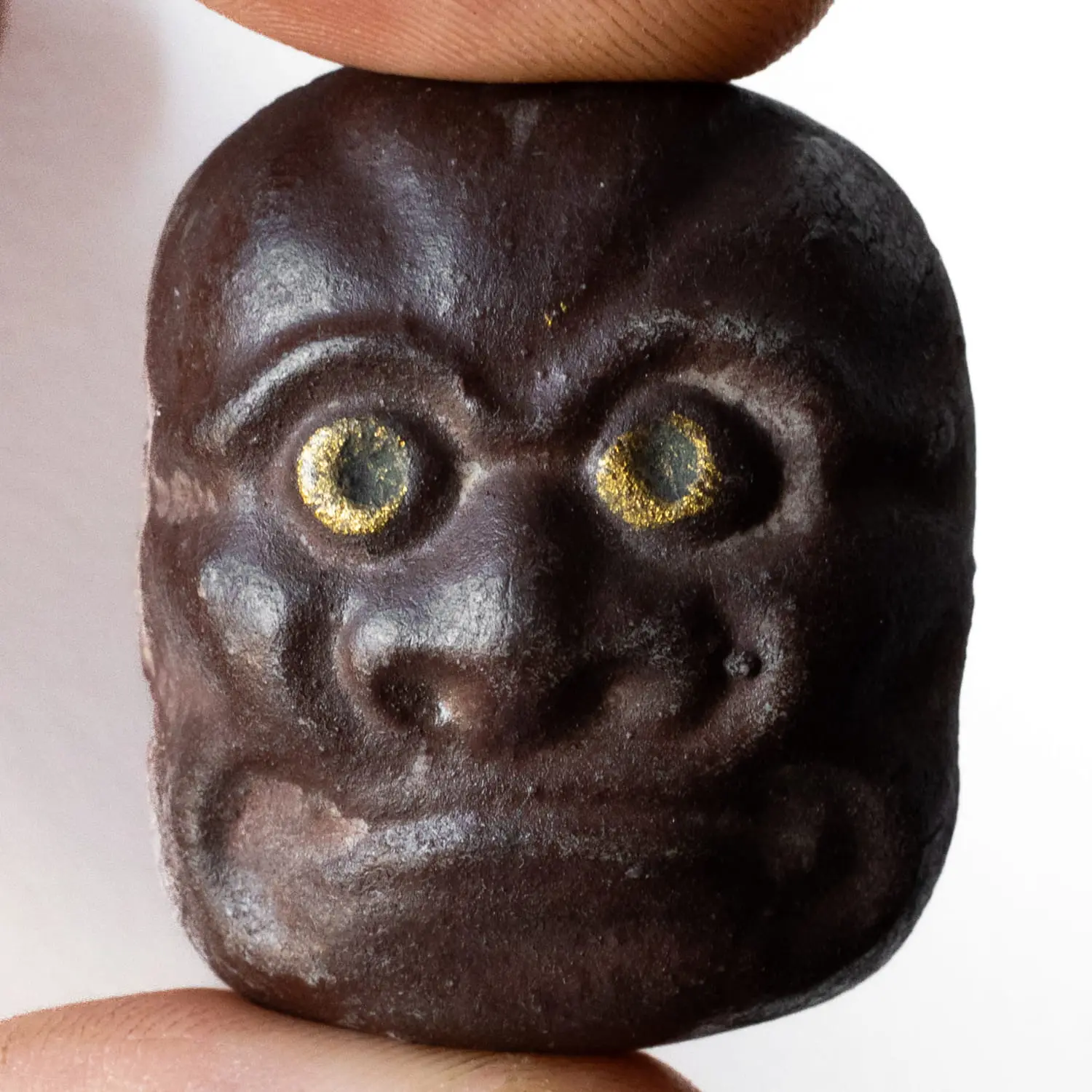 Vintage Japanese Fierce Obeshimi Noh Mask Ceramic Toggle 20th Century 4.7x3.2 cm