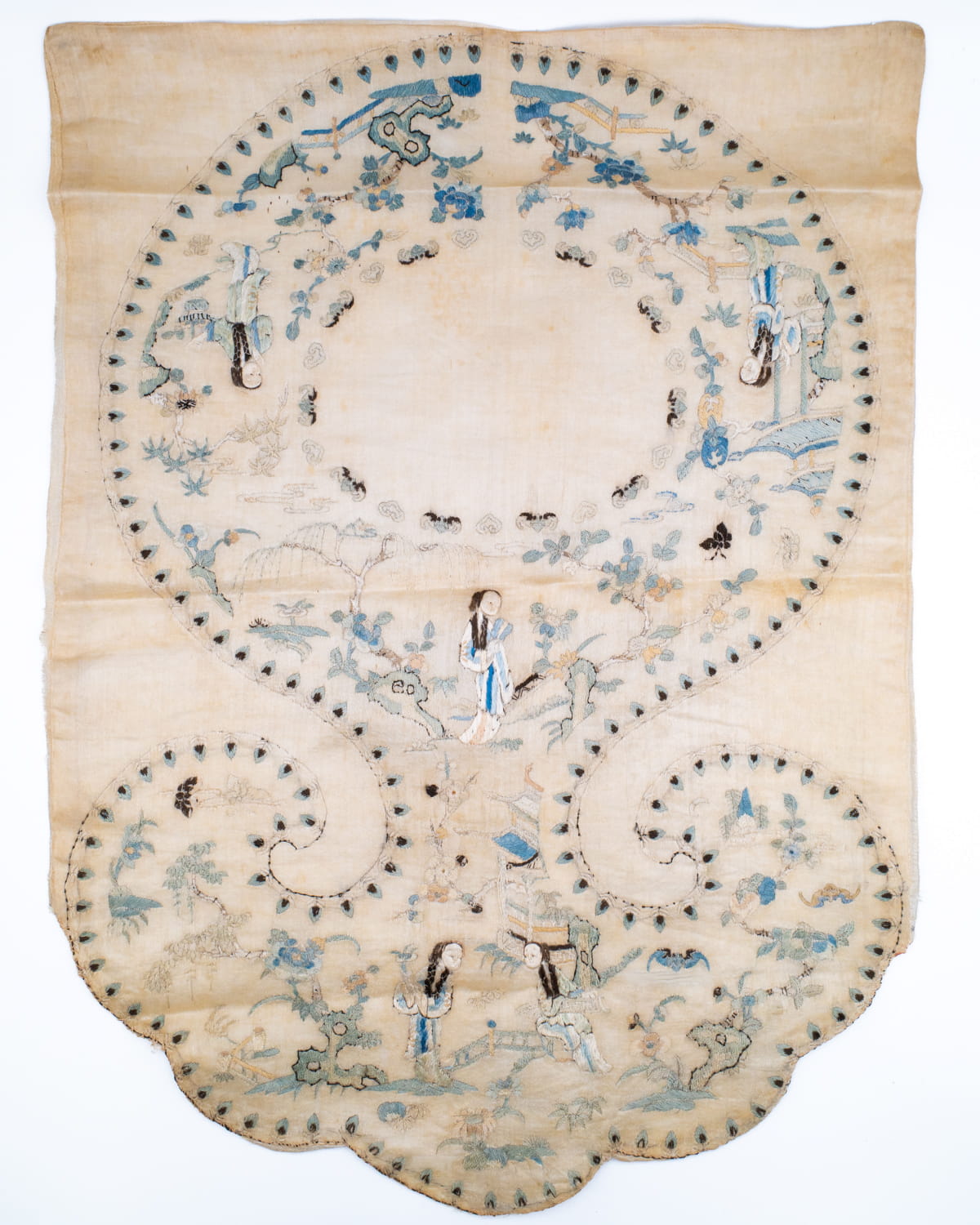 Chinese Antique Silk Embroidery Collar Panel With Figures 19th-20th C 48x35cm