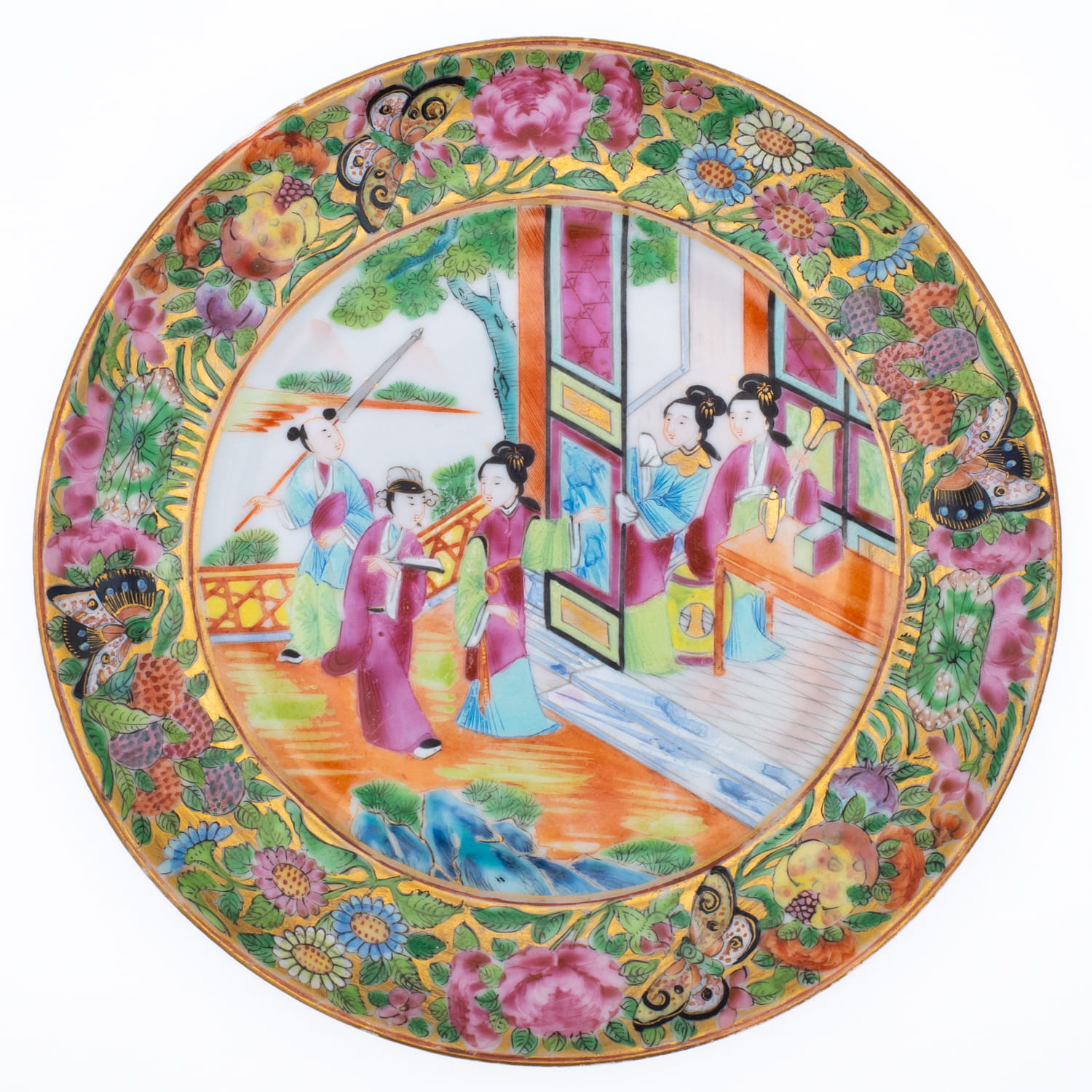 Chinese Antique Canton Famille Rose Mandarin Porcelain Plate 19thC Qing Dynasty