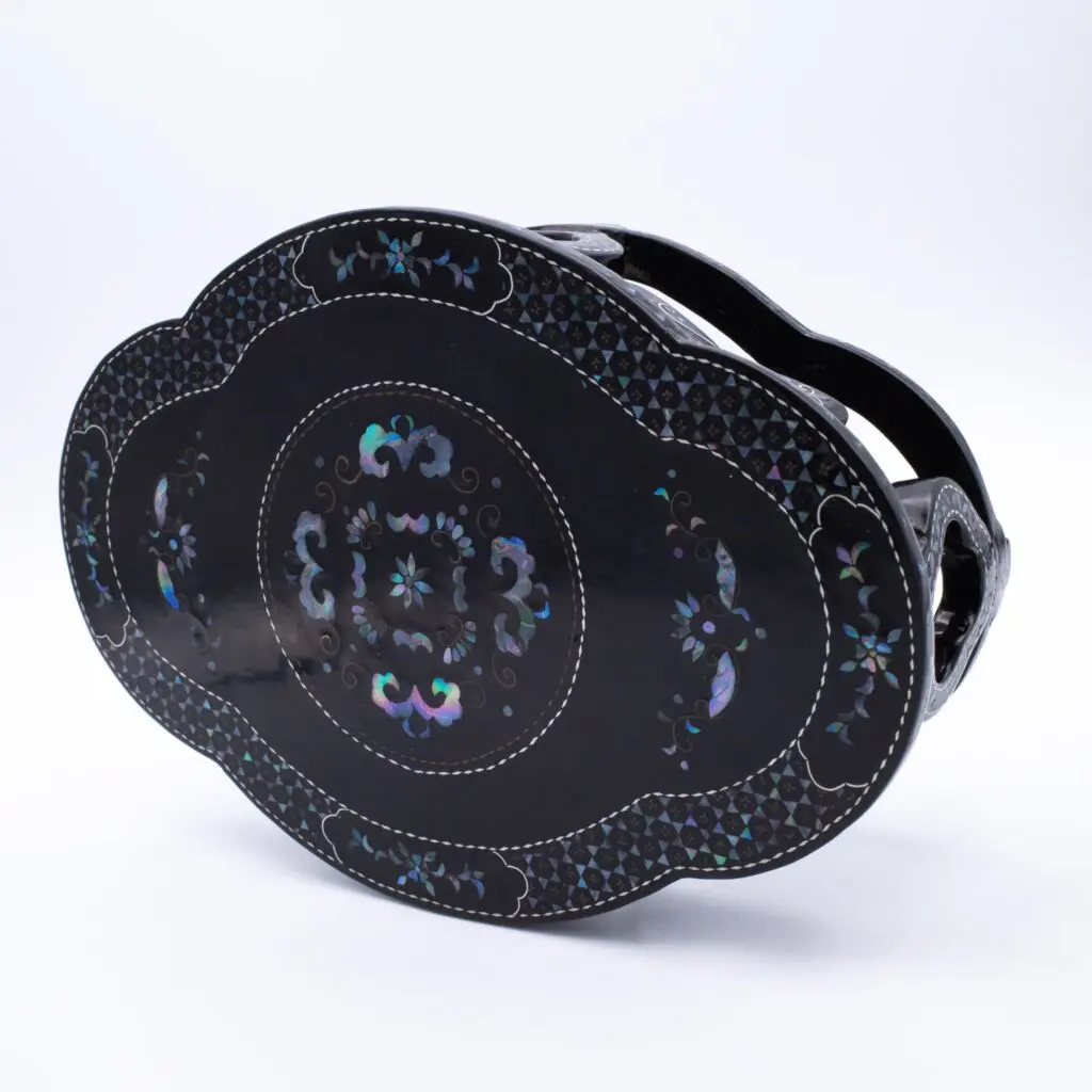 Antique or Vintage Chinese Black Lacquered Mother of Pearl Inlay Display Stand