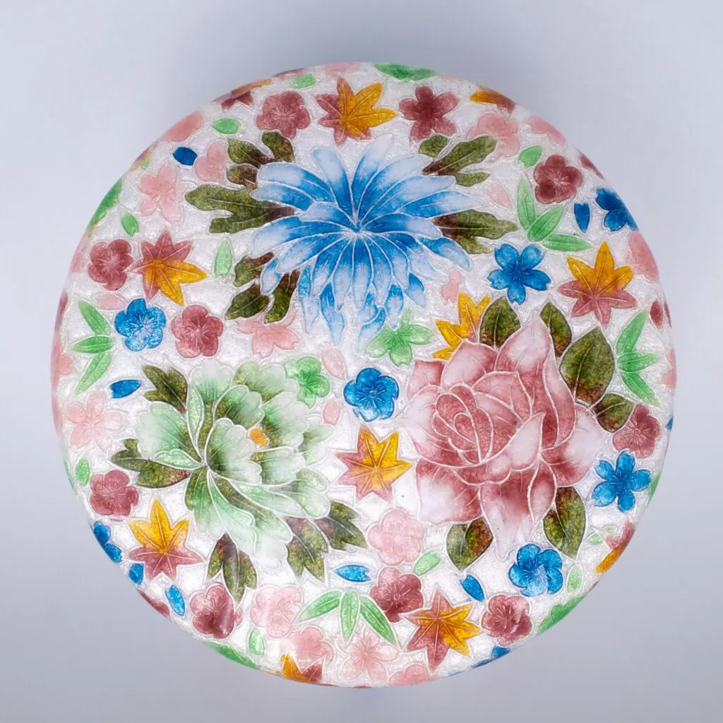 Vintage Japanese Ando Cloisonné Enamelled Velvet Lined Ginbari Round Covered Box