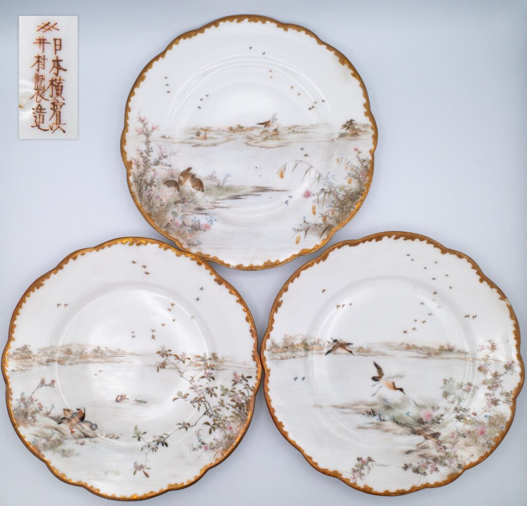 Fine Antique Japanese Meiji Period Yokohama Porcelain Plates by Hikojiro Imura