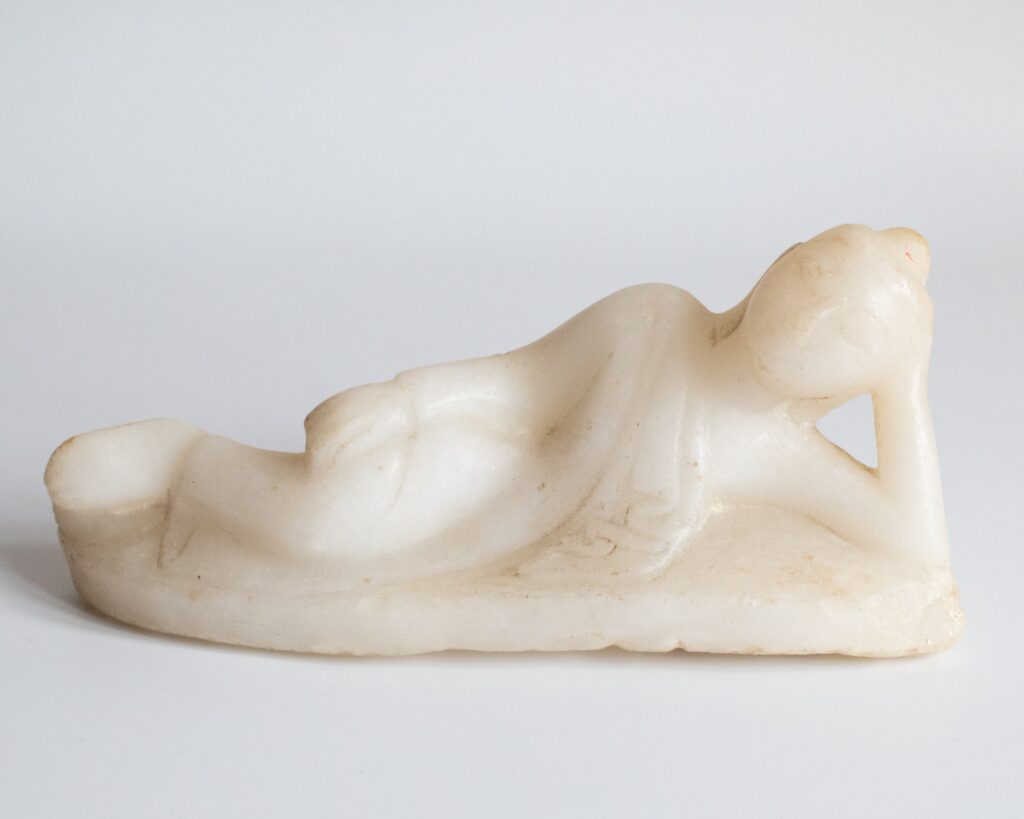 Antique Burmese Alabaster Marble Statue Reclining Buddha Parinirvana 19th-20th C