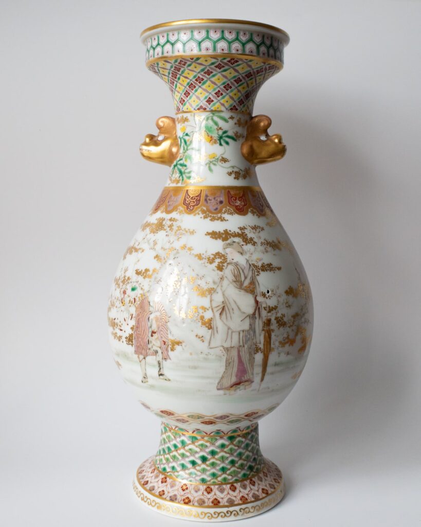 Fine Antique Japanese Kutani Porcelain Vase With Mask Handles 31 cm 12.2″