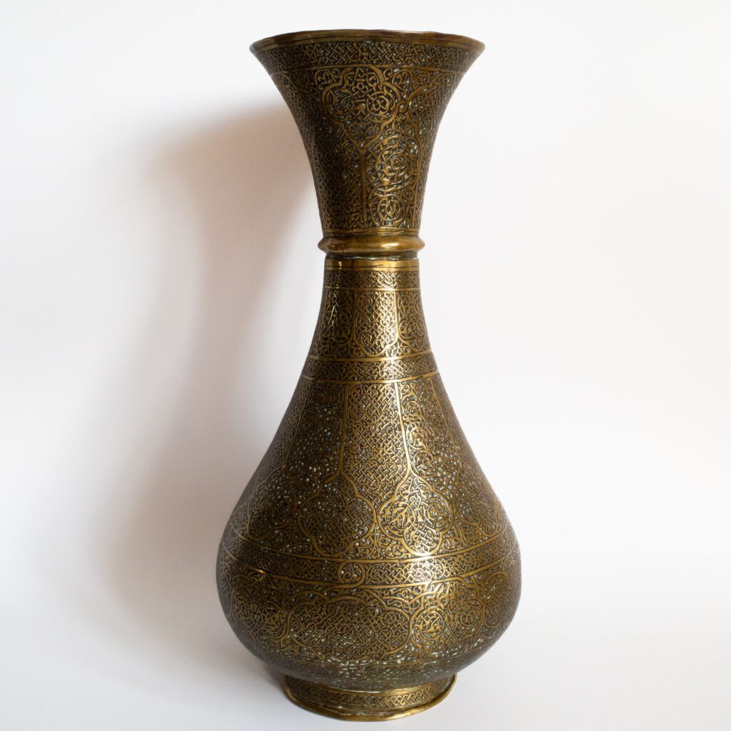 Large antique Mamluk revival style (perhaps Syrian?) vase with very intricate geometric decoration all around. Height: 28.5 cm