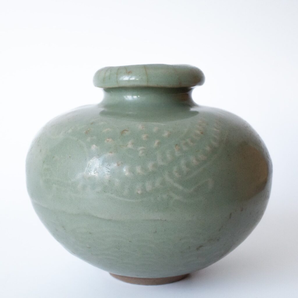 Chinese Antique Longquan Celadon Glazed Stoneware Jarlet 14th C Yuan Early Ming
