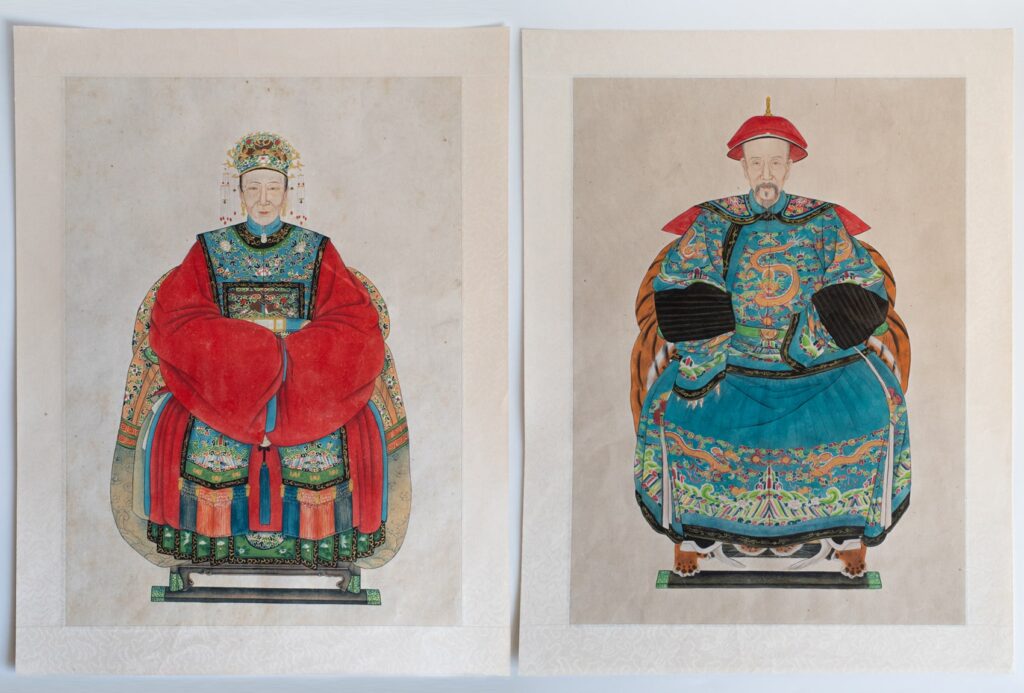 LARGE Chinese Vintage Court Officials Ancestor Portrait Paintings on Paper 20th C