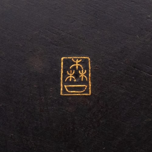 Maruni 丸二 – vintage Japanese lacquerware dating to the occupation of Japan after the WWII (1945-1952). This mark is from a pair of lacquered and incised metal vases.