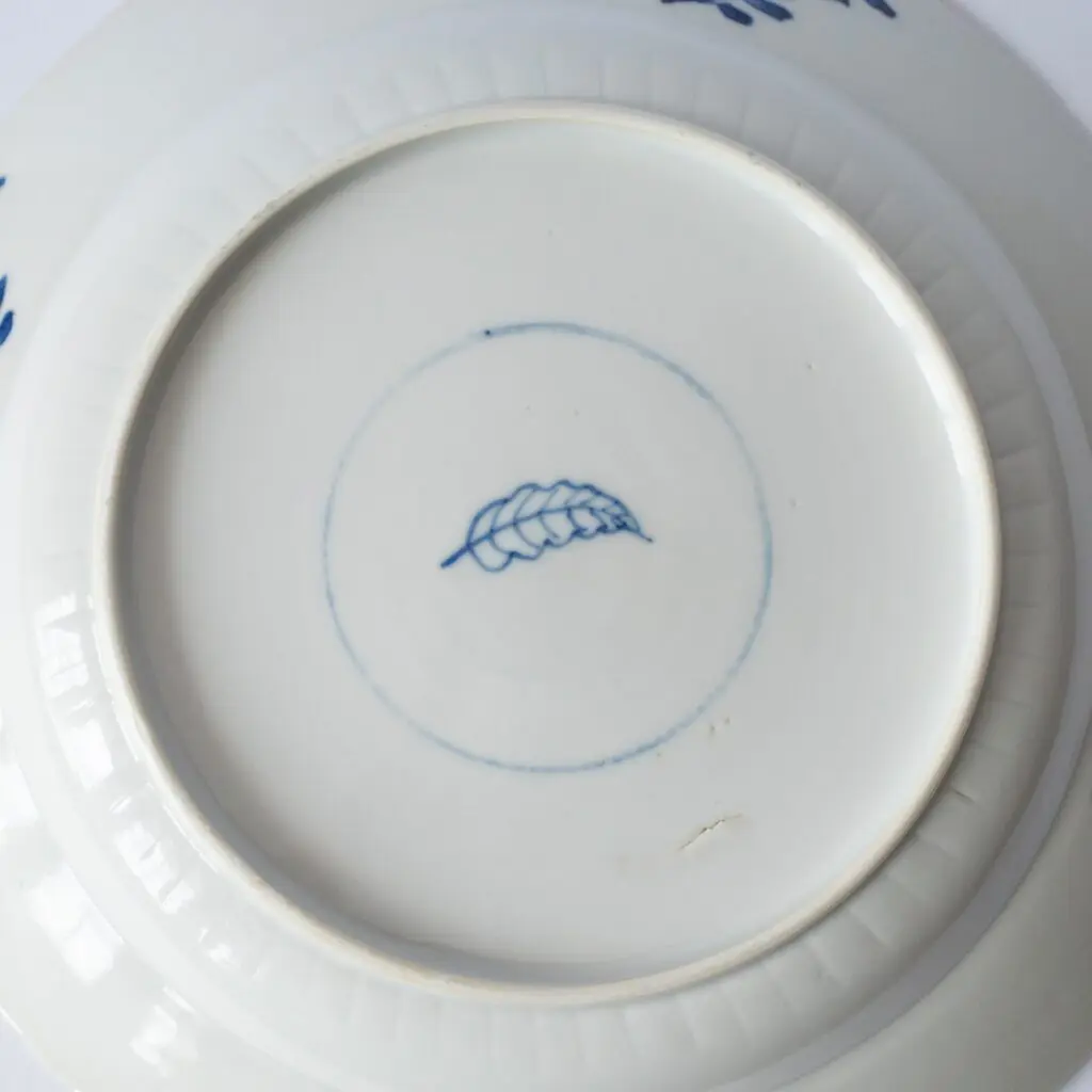 Foot rim of a similar Kangxi period porcelain deep dish, this time with Dutch Kakiemon style ‘Old Lady’ pattern featuring figures listening to a nightingale. Early 18th century.